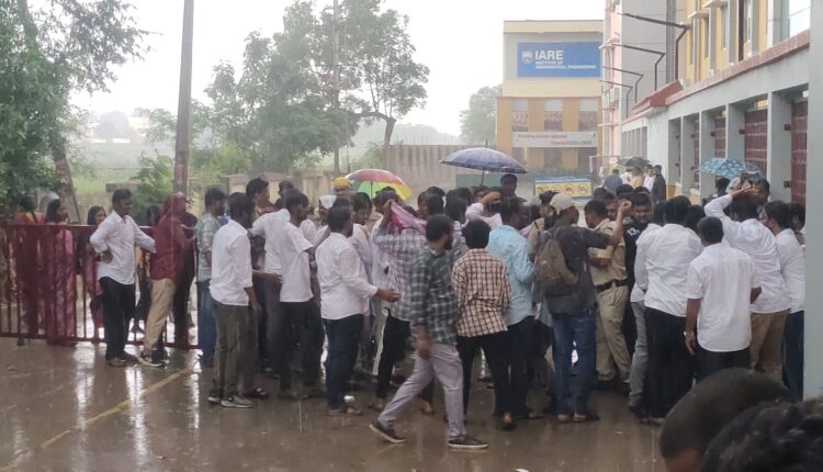 అనంతరం మధ్యాహ్నం మంచి ప్రారంభమైన జోరు వానను సైతం లెక్కచేయకుండా విద్యార్థి సంఘాల నాయకులు వర్షంలో తడుస్తూనే రోడ్డుపై బైఠాయించి రెట్టింపు ఉత్సాహంతో జోరుగా నిరసన వ్యక్తం చేశారు. విద్యార్థులకు న్యాయం చేయాలని, కళాశాల యాజమాన్యాన్ని వెంటనే అరెస్టు చేయాలని నినాదాలు చేశారు.