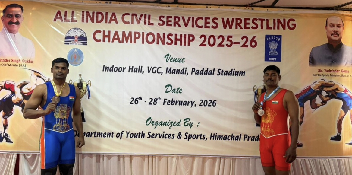 కూకట్ పల్లి (న్యూస్ విధాత్రి), ఫిబ్రవరి 28: దేశవ్యాప్తంగా ప్రతిష్టాత్మకంగా నిర్వహించిన ఆల్ ఇండియా సివిల్ సర్వీసెస్ రెజ్లింగ్ ఛాంపియన్షిప్ – 2025-26 పోటీల్లో తెలంగాణ ఎక్సైజ్ శాఖ సిబ్బంది విశేష ప్రతిభ కనబరిచి రాష్ట్రానికి గౌరవం తీసుకొచ్చారు. ఫిబ్రవరి 26 నుండి 28 వరకు హిమాచల్ ప్రదేశ్ లోని పడ్డల్ స్టేడియం ఇండోర్ హాల్ లో డిపార్ట్మెంట్ ఆఫ్ యూత్ సర్వీసెస్ అండ్ స్పోర్ట్స్ ఆధ్వర్యంలో జాతీయ స్థాయి పోటీలు ఘనంగా జరిగాయి. దేశంలోని వివిధ రాష్ట్రాల సివిల్ సర్వీసెస్ విభాగాలకు చెందిన ప్రతిభావంతులైన క్రీడాకారులు ఈ పోటీల్లో పాల్గొన్నారు.
